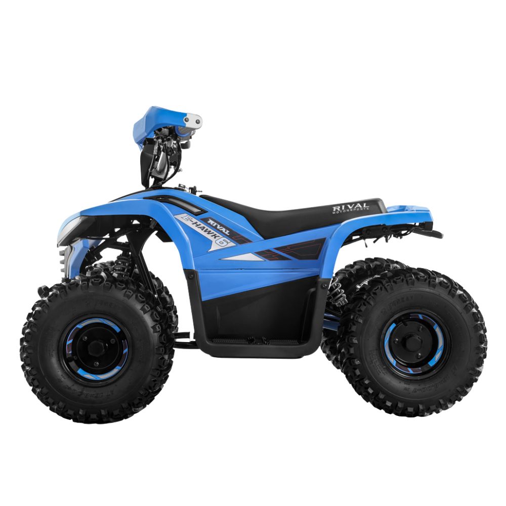 Dodatnu sigurnost pruža fizički sigurnosni prekidač sa uzicom za trenutno zaustavljanje. Vožnja je stabilna i udobna zahvaljujući robusnim gumama dimenzija 16 x 8 – 7, dok masivne dimenzije šasije od 142x99x99 cm daju kvadu ozbiljan i stabilan stav na terenu.