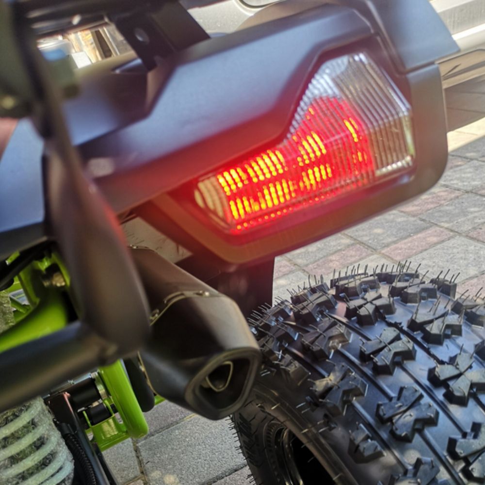 Ono što ovaj model izdvaja u premium klasu su aluminijumske felne koje smanjuju težinu i povećavaju izdržljivost, kao i specifičan auspuh Akrapovič dizajna koji kvadu daje moćan, sportski zvuk. Za vrhunsku vidljivost i moderan izgled brinu se super LED svetla sa integrisanim pokazivačima pravca u farovima, dok vozač sve ključne informacije prati putem preglednog LED displeja u boji. Bezbednost je prioritet, pa je kvad opremljen hidrauličnim disk kočnicama, štitnicima za ruke, retrovizorima i sigurnosnim prekidačem za roditelje.