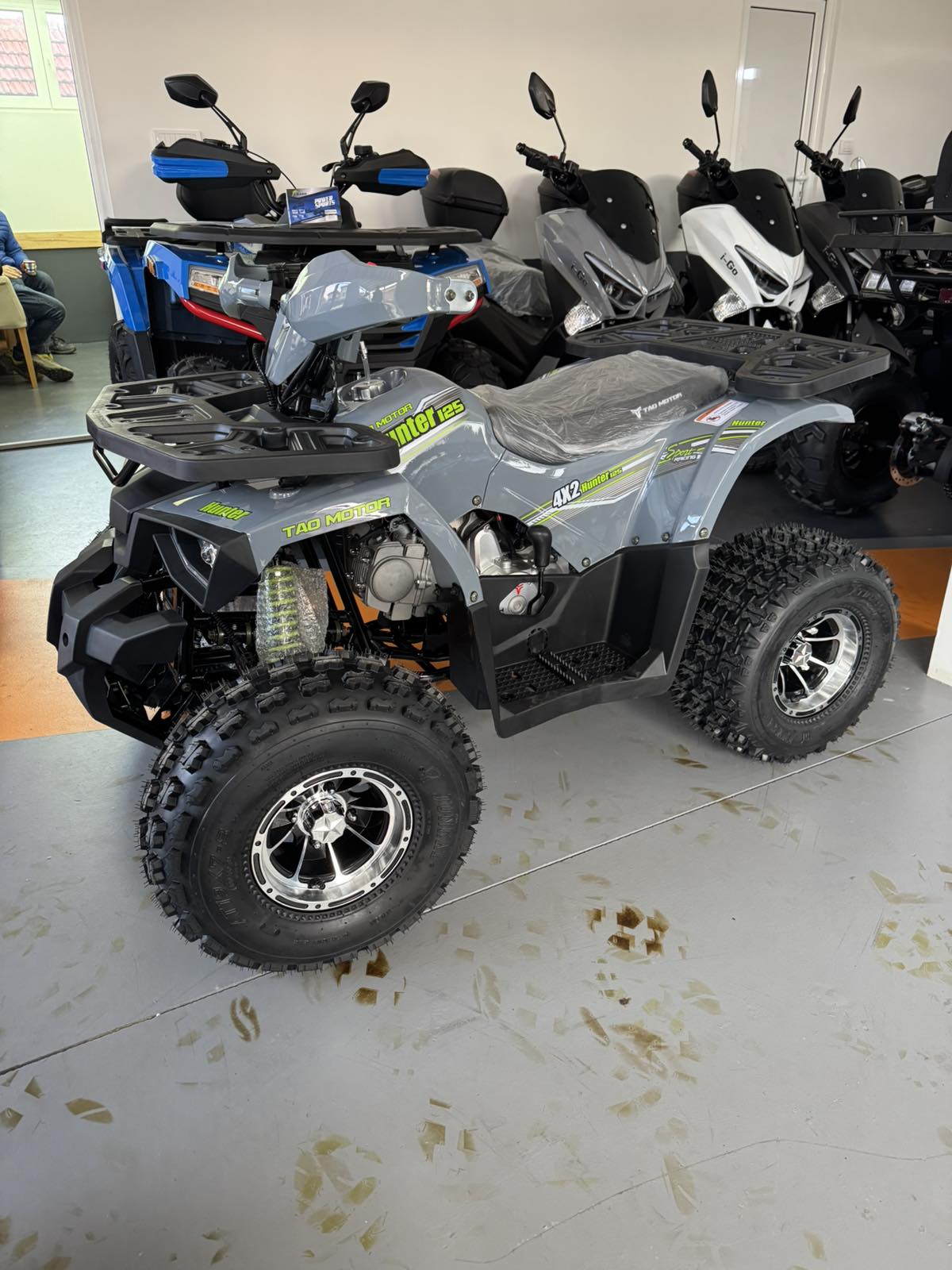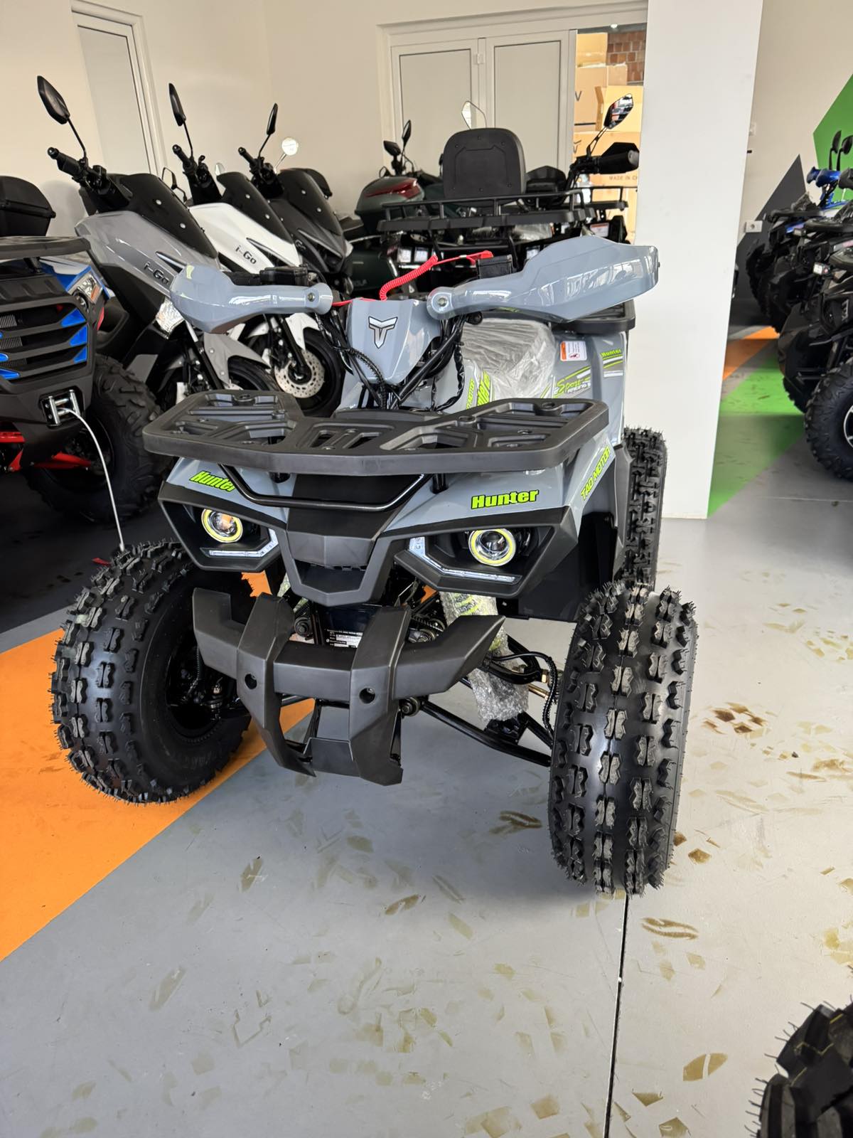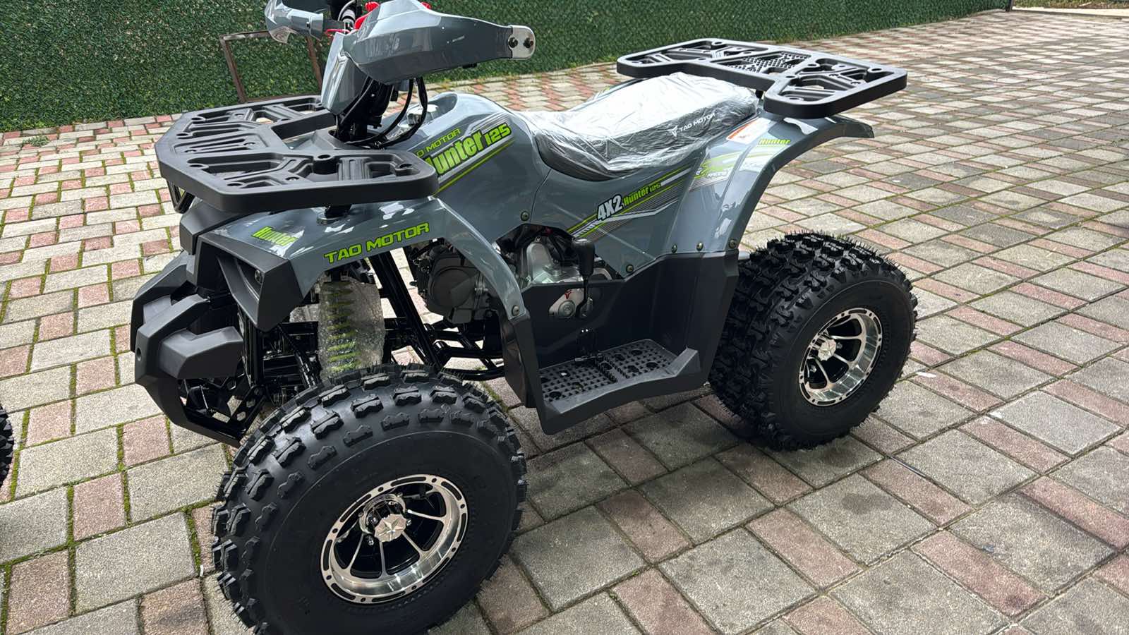 Siva boja ovog modela daje ATV-u moderan, sportski i ozbiljan izgled. Ova neutralna nijansa je izuzetno praktična jer se lako uklapa sa svim detaljima i opremom, a ujedno je i zahvalna za održavanje, jer manje ističe prljavštinu nakon vožnje po terenu. U kombinaciji sa alu felnama i LED svetlima, siva boja dodatno naglašava robustan i atraktivan dizajn Tao Motor Hunter 125cc kvada.